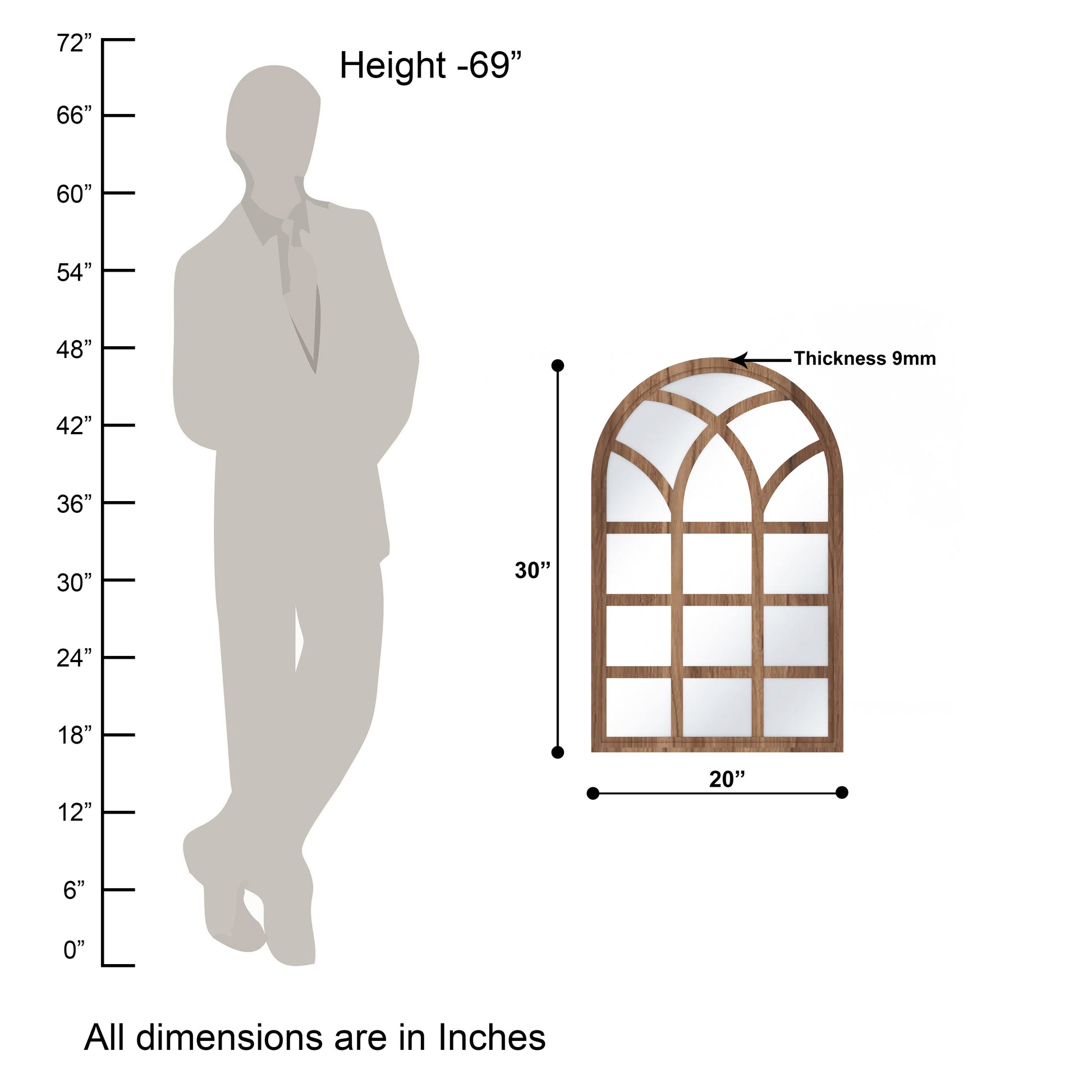 Arched Motif Window Frame Decor Wall Mirror (Walnut)