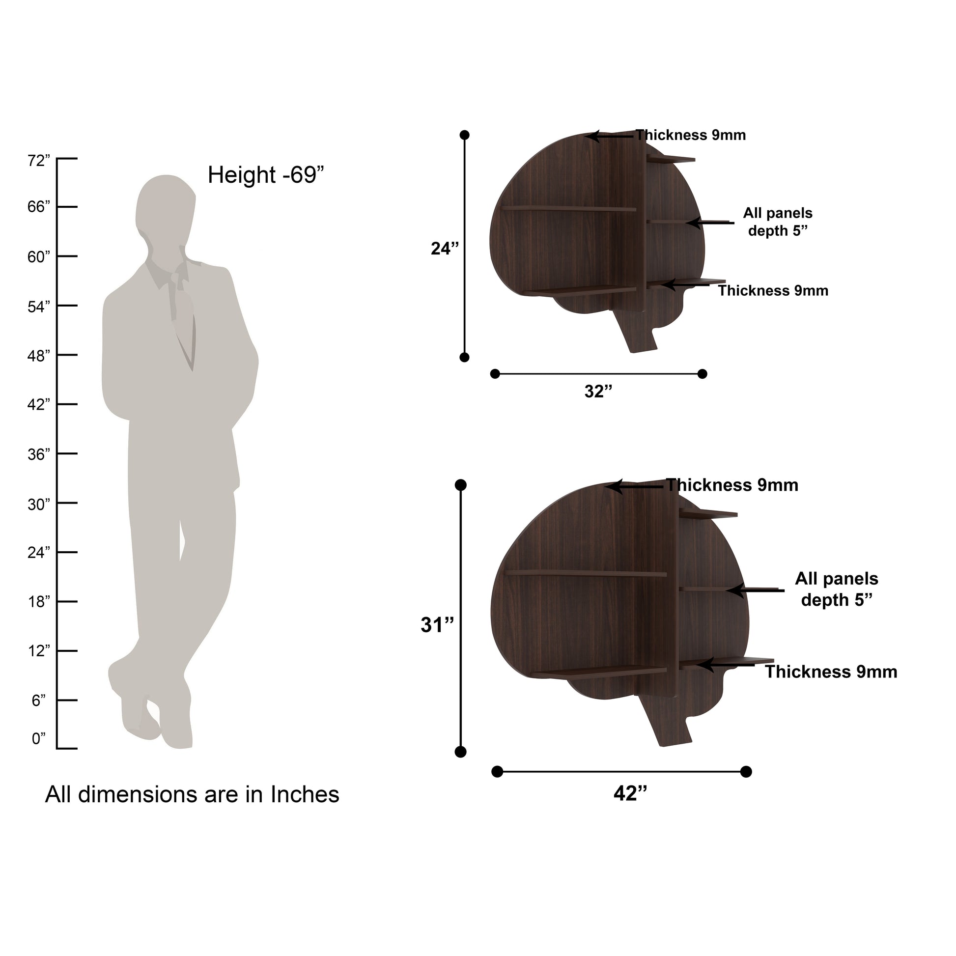 This exquisite Brain Shape Wall Shelf brings a unique decor for your bare walls with a great utility. It is matte finished with walnut color, made of indian Engineered wood. Ideal for living room, Bedroom, Study room, Kid's room. Can be used as Book shelf, wall shelf, Toy shelf, showcase etc. The package includes all accessories like nails, wall plugs, instructions needed to hang on wall