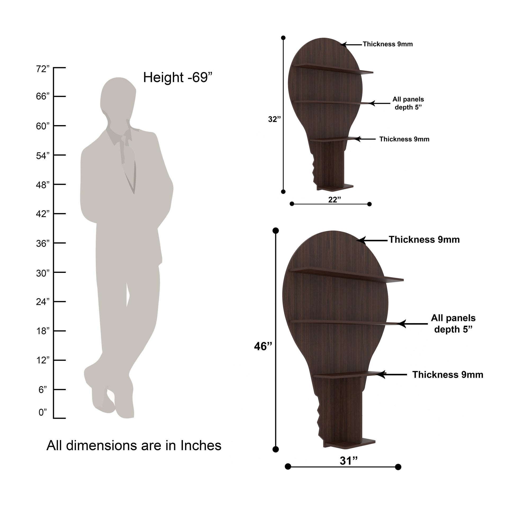 This exquisite Bulb Shape Wall Shelf brings a unique decor for your bare walls with a great utility. It is matte finished with walnut color, made of Indian Engineered wood. Ideal for living room, Bedroom, Study room, Kid's room. Can be used as Book shelf, wall shelf, Toy shelf, showcase etc. The package includes all accessories like nails, wall plugs, instructions needed to hang on wall