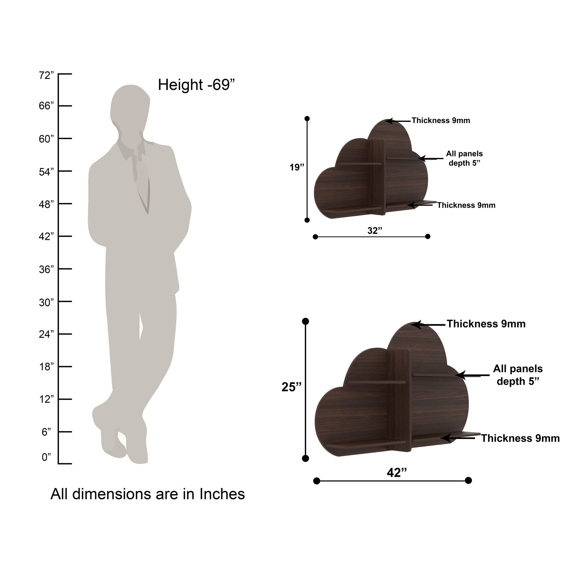This exquisite Cloud Shape Wall Shelf brings a unique decor for your bare walls with a great utility. It is matte finished with walnut color, made of indian Engineered wood. Ideal for living room, Bedroom, Study room, Kid's room. Can be used as Book shelf, wall shelf, Toy shelf, showcase etc. The package includes all accessories like nails, wall plugs, instructions needed to hang on wall