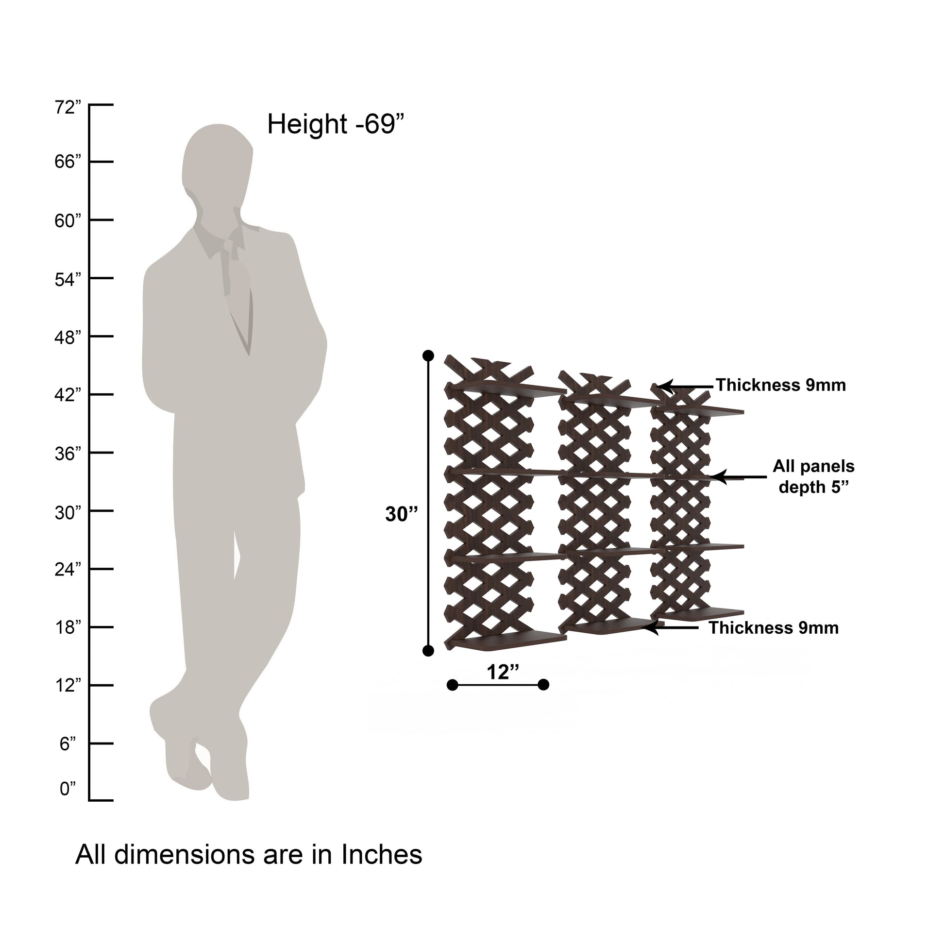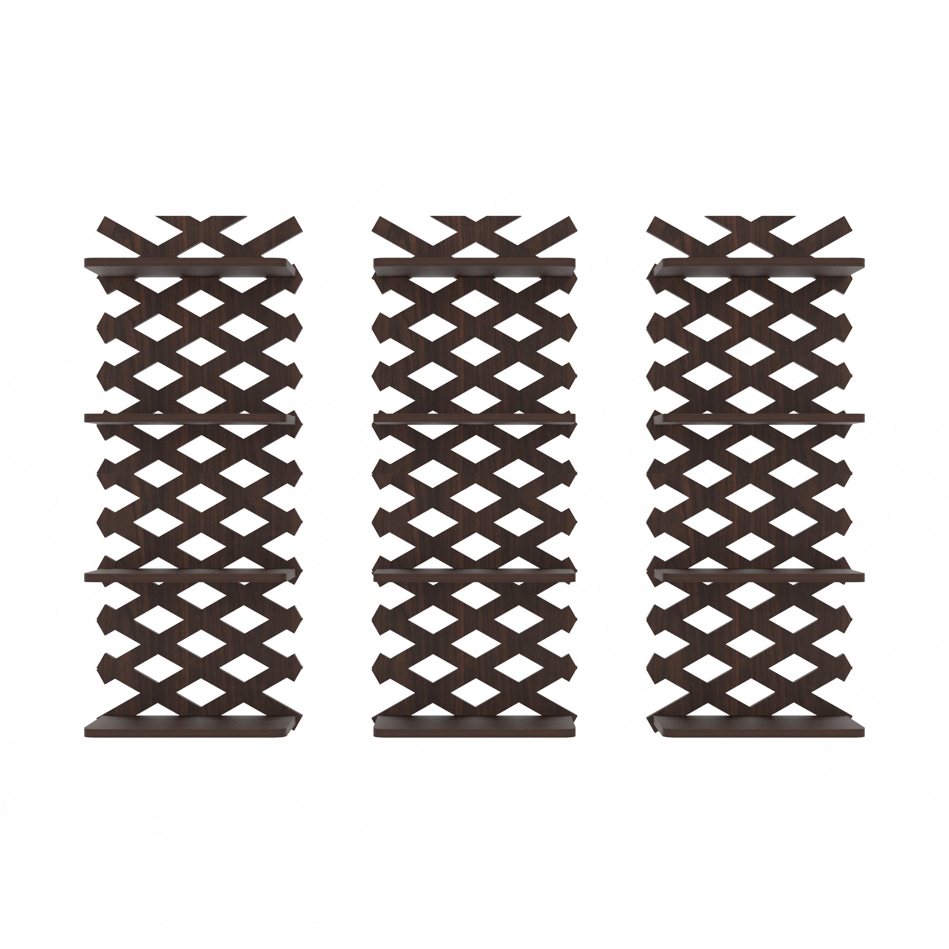 This exquisite Criss Cross Shape Wall Shelf brings a unique decor for your bare walls with a great utility. It is matte finished with walnut color, made of Indian Engineered wood. Ideal for living room, Bedroom, Study room, Kid's room. Can be used as Book shelf, wall shelf, Toy shelf, showcase etc. The package includes all accessories like nails, wall plugs, instructions needed to hang on wall