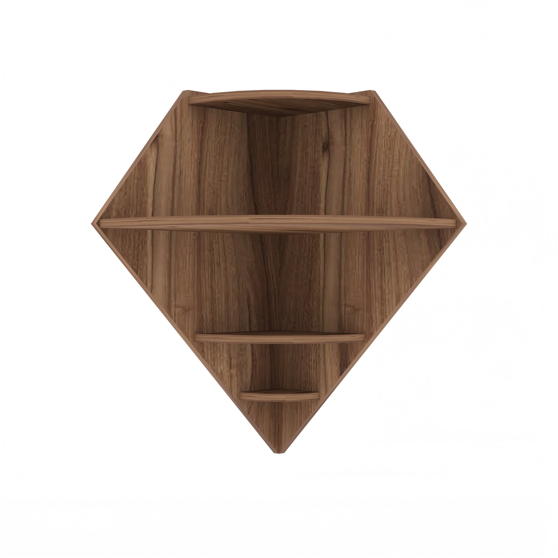 This exquisite Diamond Shape Wall Shelf brings a unique decor for your bare walls with a great utility. It is matte finished with walnut color, made of indian Engineered wood. Ideal for living room, Bedroom, Study room, Kid's room. Can be used as Book shelf, wall shelf, Toy shelf, showcase etc. The package includes all accessories like nails, wall plugs, instructions needed to hang on wall
