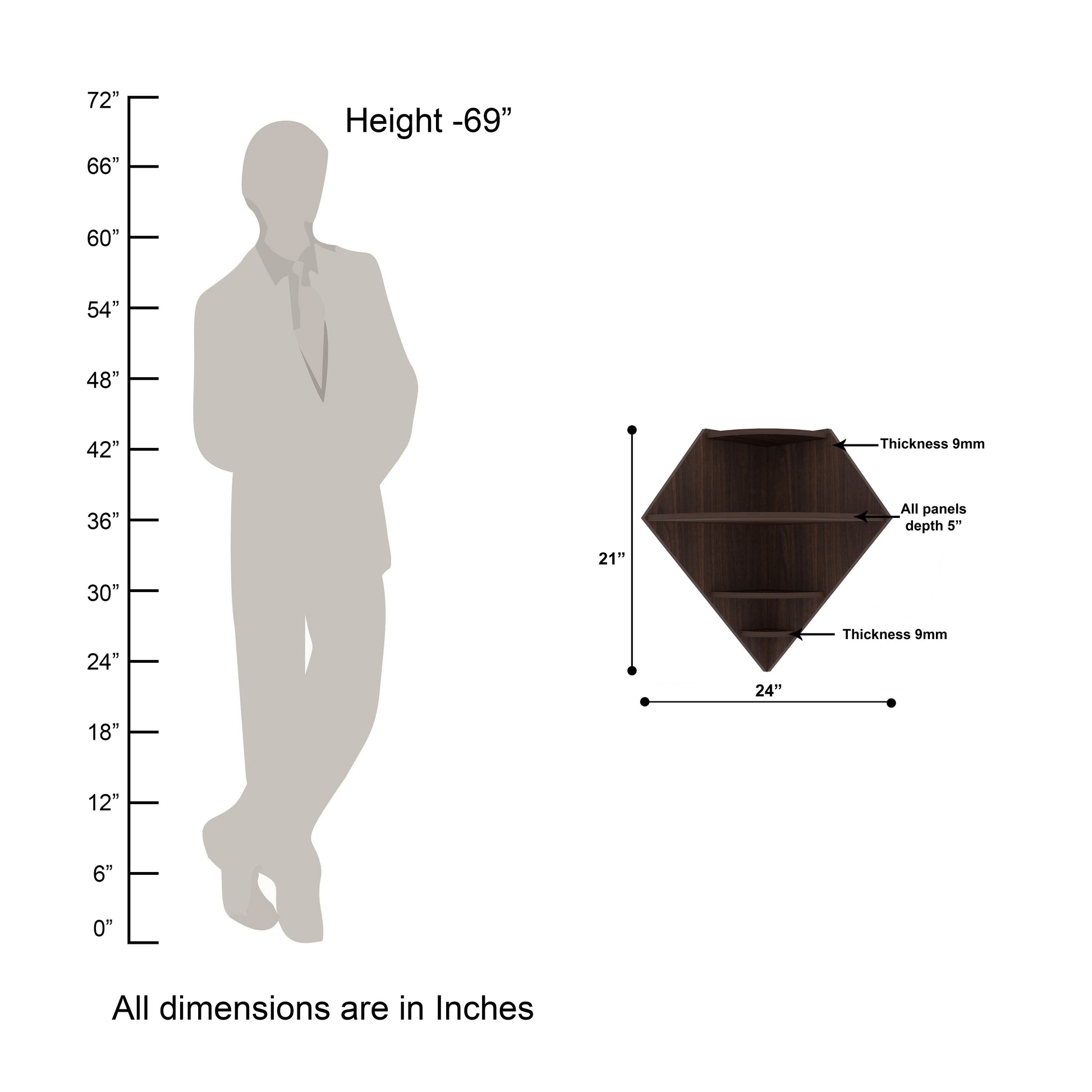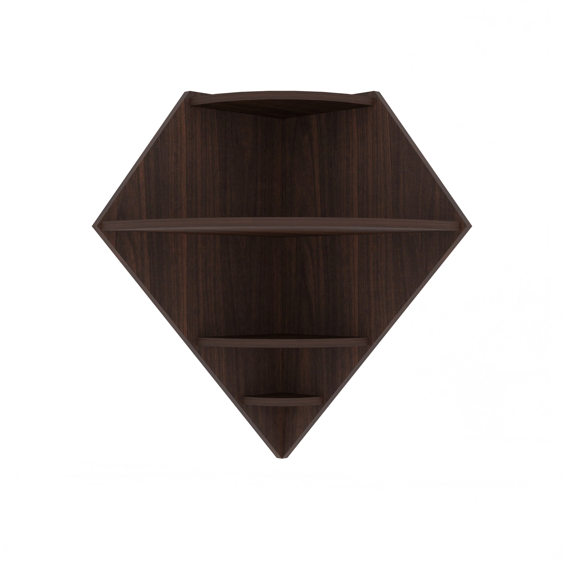 This exquisite Diamond Shape Wall Shelf brings a unique decor for your bare walls with a great utility. It is matte finished with walnut color, made of indian Engineered wood. Ideal for living room, Bedroom, Study room, Kid's room. Can be used as Book shelf, wall shelf, Toy shelf, showcase etc. The package includes all accessories like nails, wall plugs, instructions needed to hang on wall