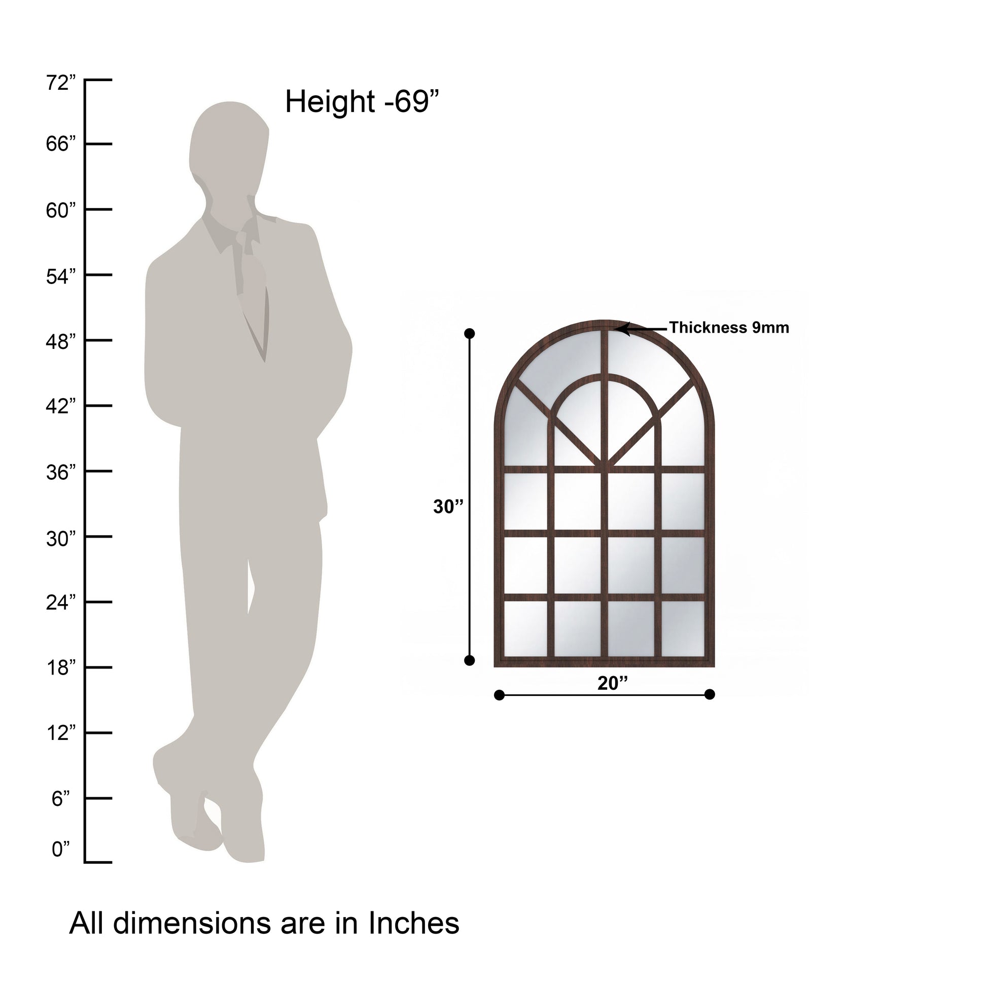 This exquisite European Arch Motif Window Frame Shape Wall Mirror brings a unique decor for your bare walls with a great utility. It is matte finished with walnut color, made of Indian Engineered wood. Ideal for living room, Bedroom, Study room, Kid's room. Can be used as Book shelf, wall shelf, Toy shelf, showcase etc. The package includes all accessories like nails, wall plugs, instructions needed to hang on wall
