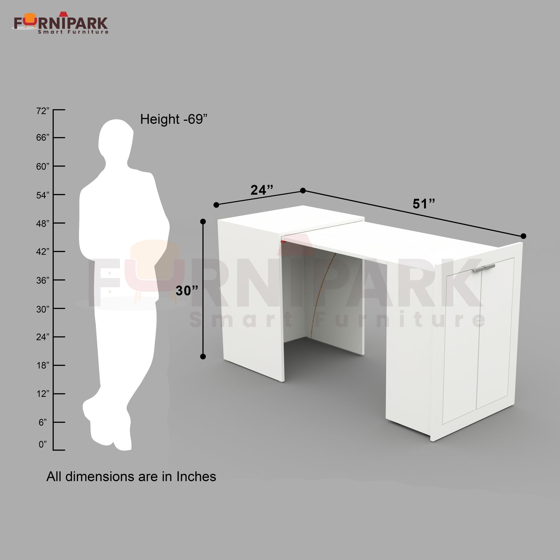 Crafted from premium engineered wood, this smart table is designed to make the most of limited spaces. Perfect for small houses, compact rooms, or modern offices, it blends functionality with style.