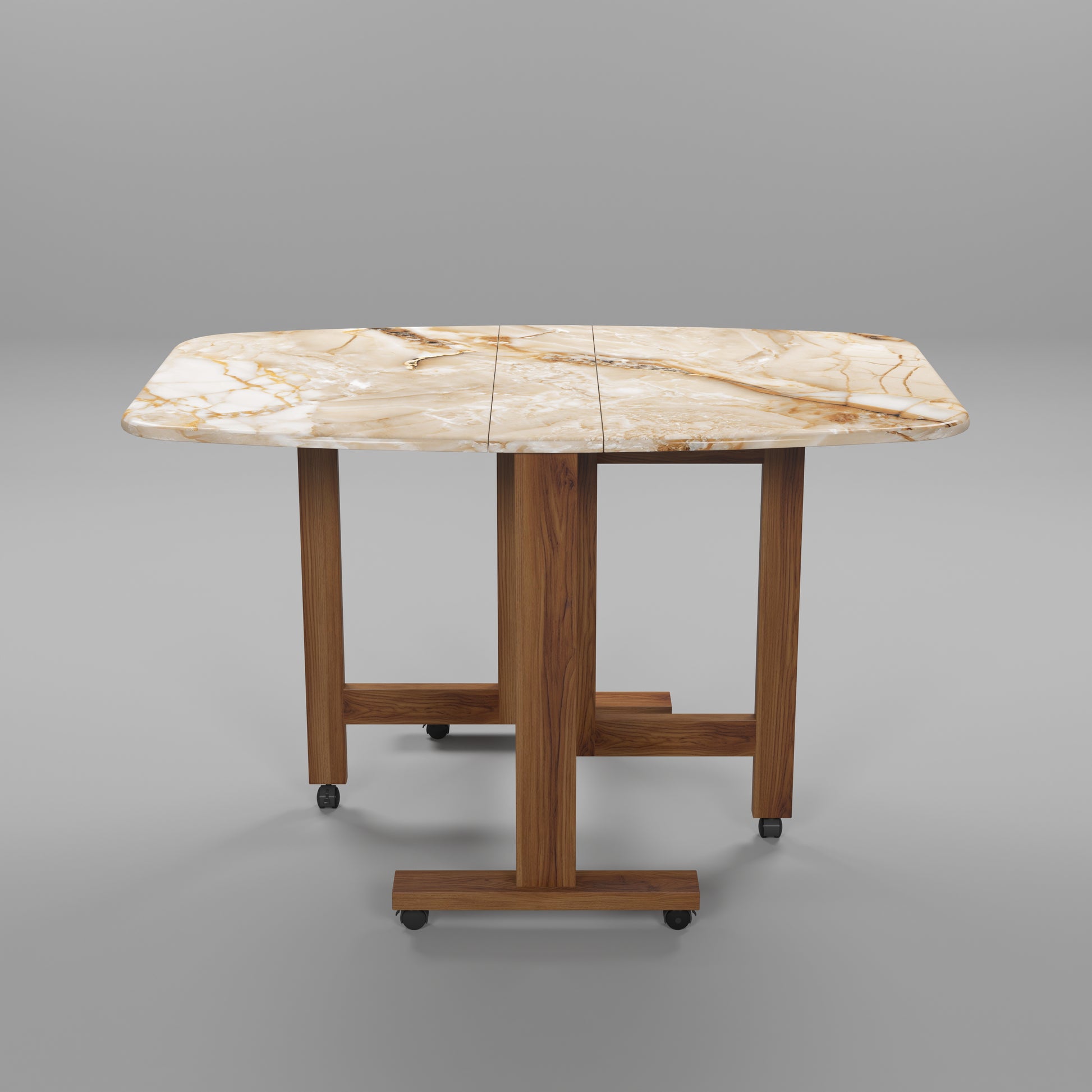 Folding Dining Table( Italian, Gold Marble, Natural Wood Metal Frame)
