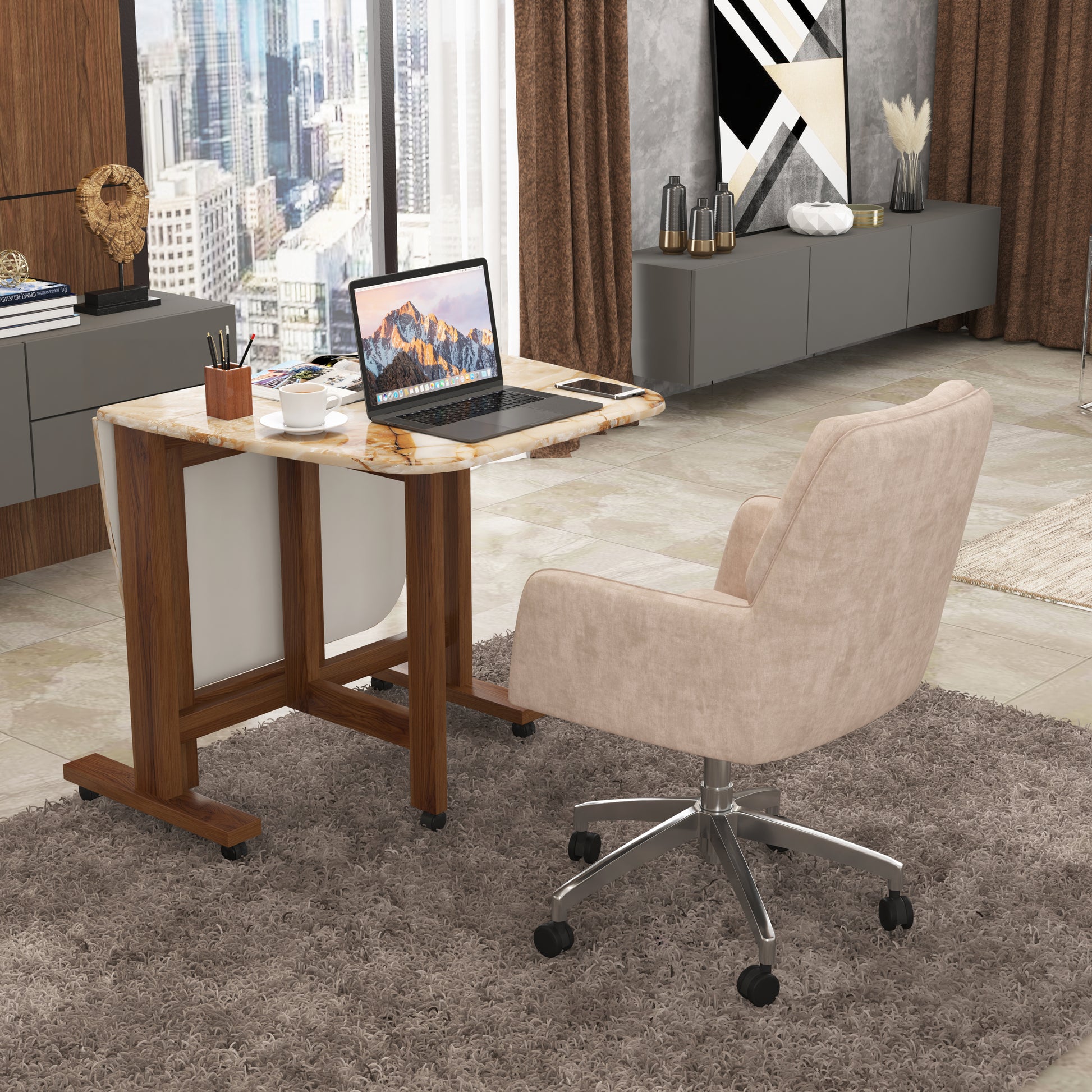 The engineered marble top is waterproof, fire-resistant, scratch-resistant, and extremely easy to clean—making it ideal for everyday use as well as special occasions. Whether it’s a family dinner, a home party, or a quick workspace setup, this table adapts effortlessly to your needs.