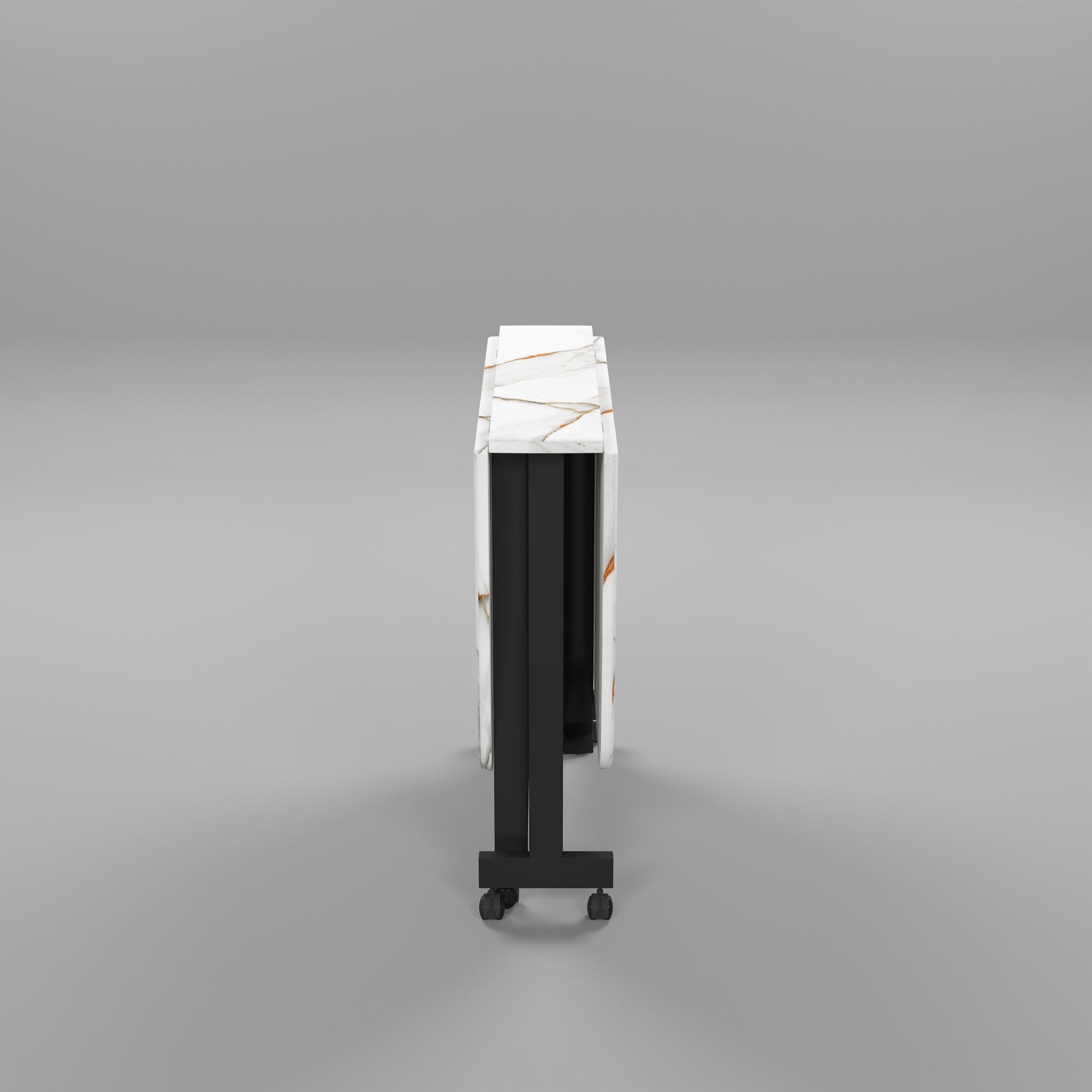 Folding Dining Table( Italian, White with Gold Marble, Black Metal Frame)