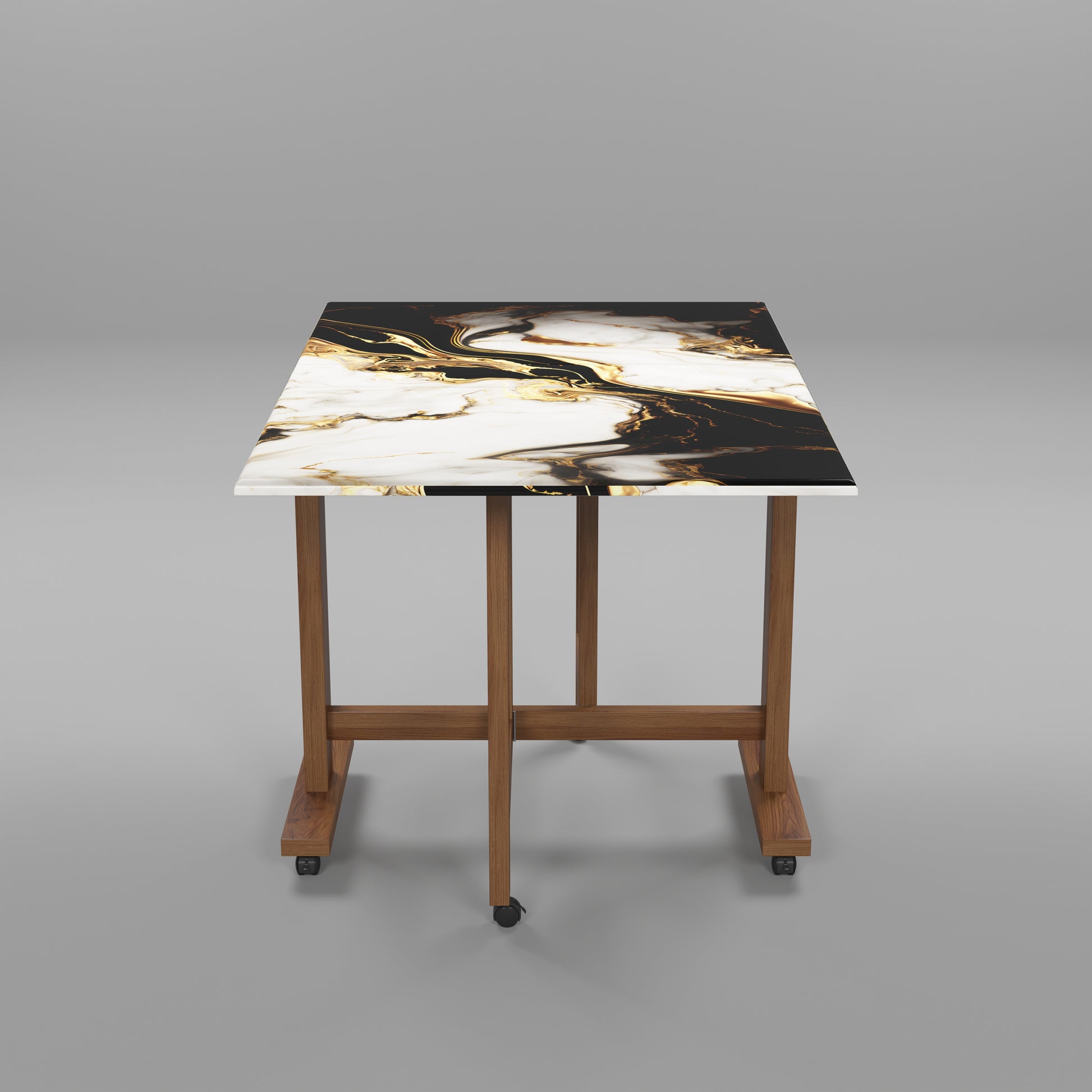 Folding Dining Table( Rectangular, White and Black with Gold Marble, Natural Wooden Frame)
