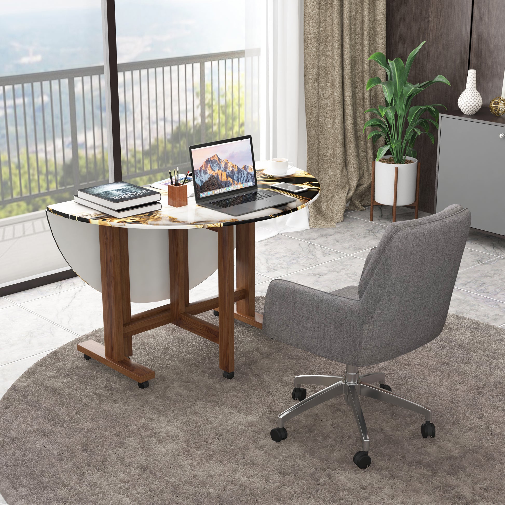 The engineered marble top is waterproof, fire-resistant, scratch-resistant, and extremely easy to clean—making it ideal for everyday use as well as special occasions. Whether it’s a family dinner, a home party, or a quick workspace setup, this table adapts effortlessly to your needs.