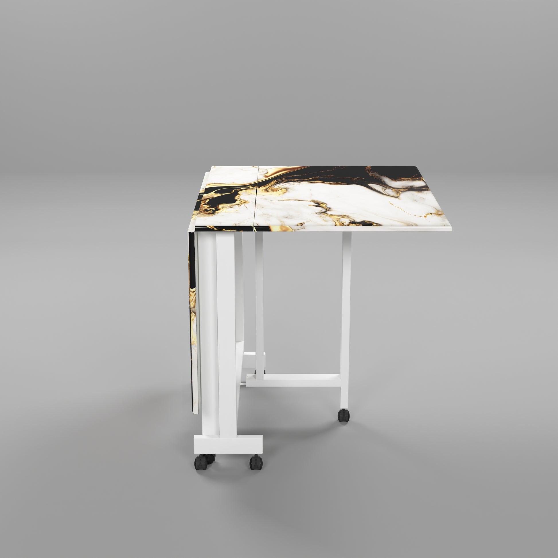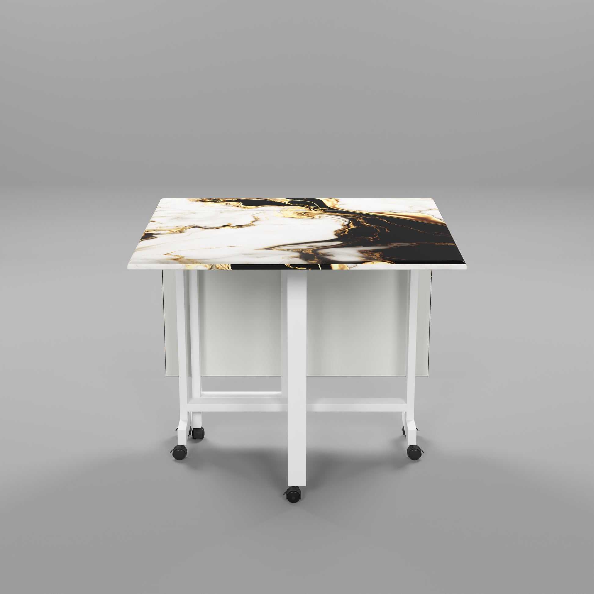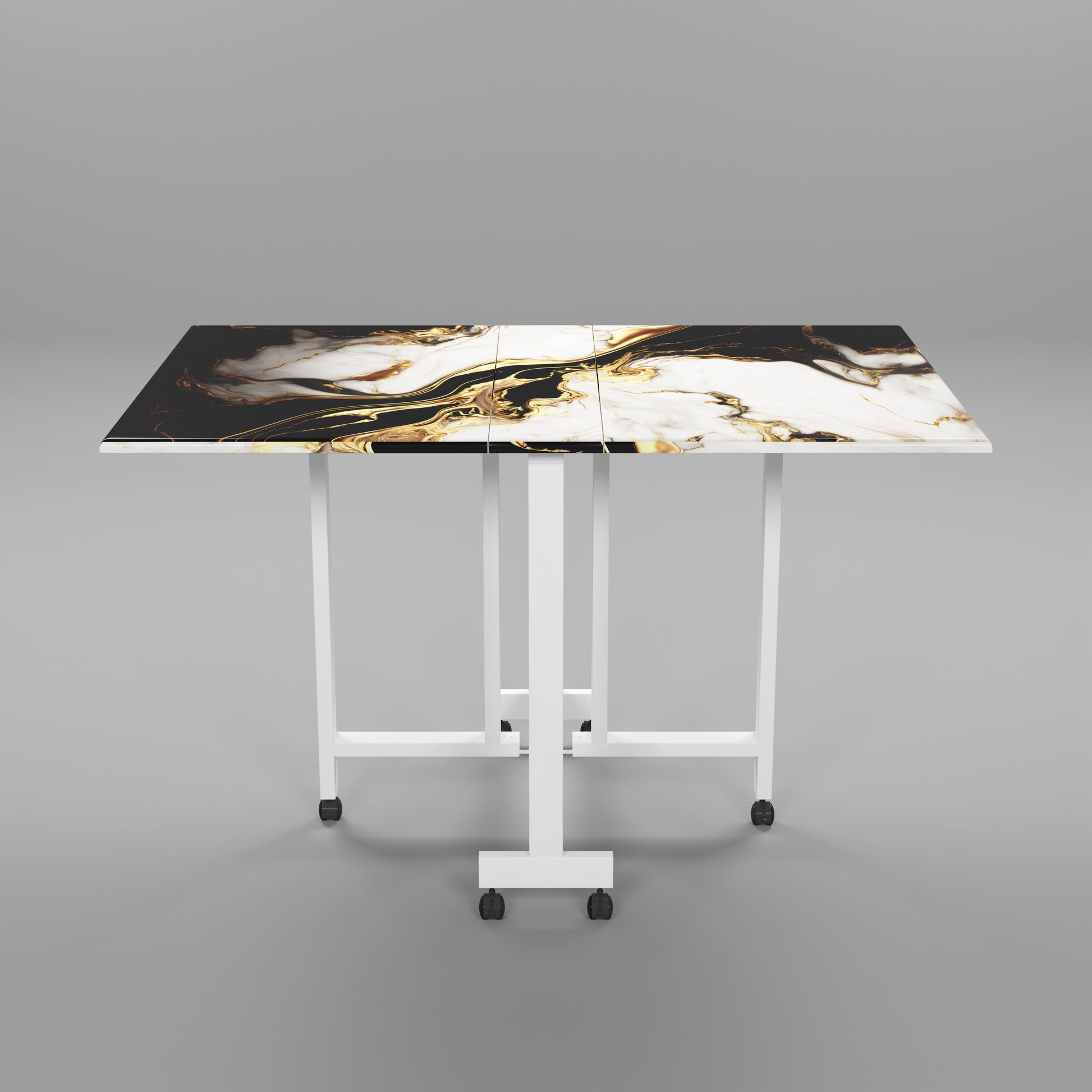 Folding Dining Table(Rectangular, White and Black with Gold Marble, White Metal Frame)