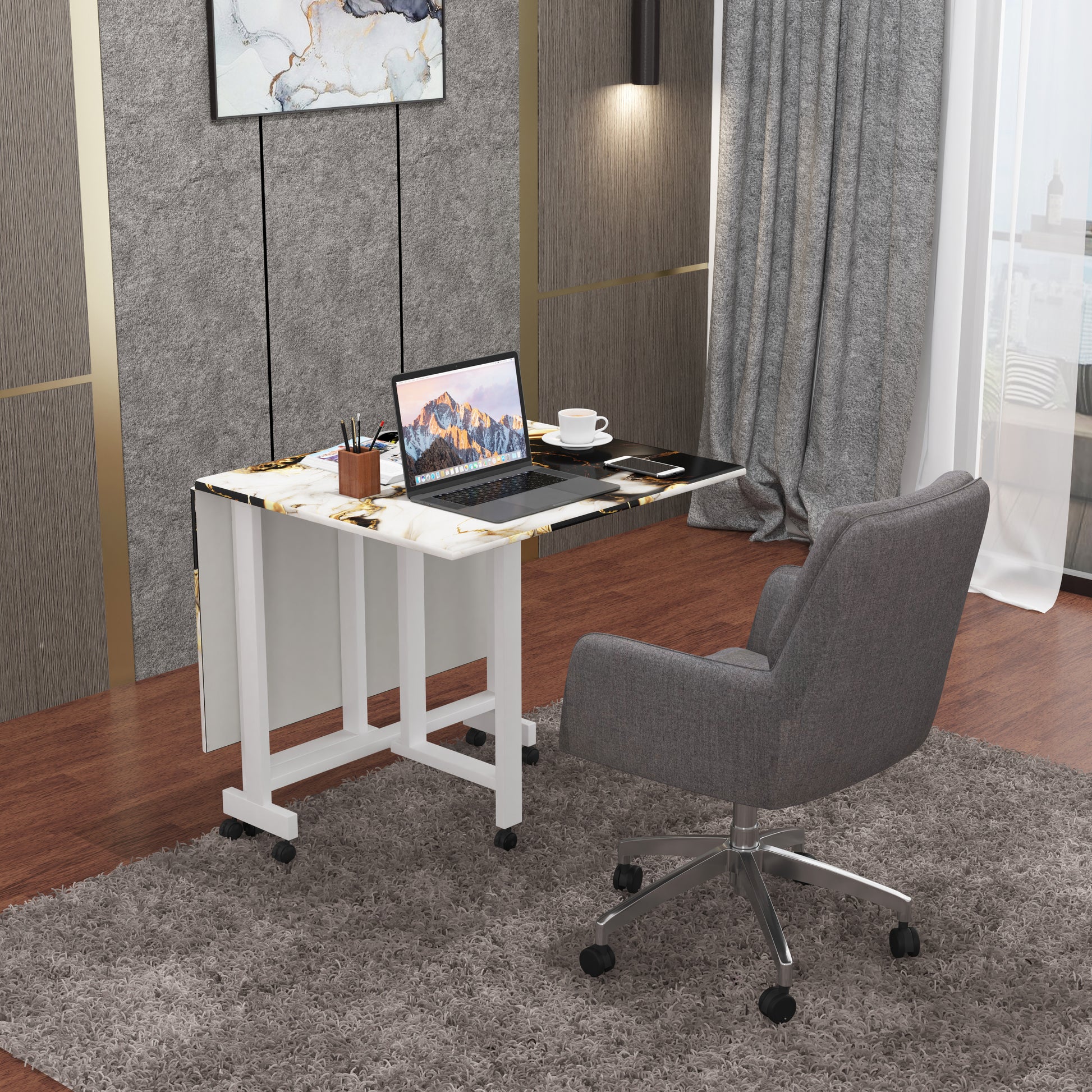 The engineered marble top is waterproof, fire-resistant, scratch-resistant, and extremely easy to clean—making it ideal for everyday use as well as special occasions. Whether it’s a family dinner, a home party, or a quick workspace setup, this table adapts effortlessly to your needs.