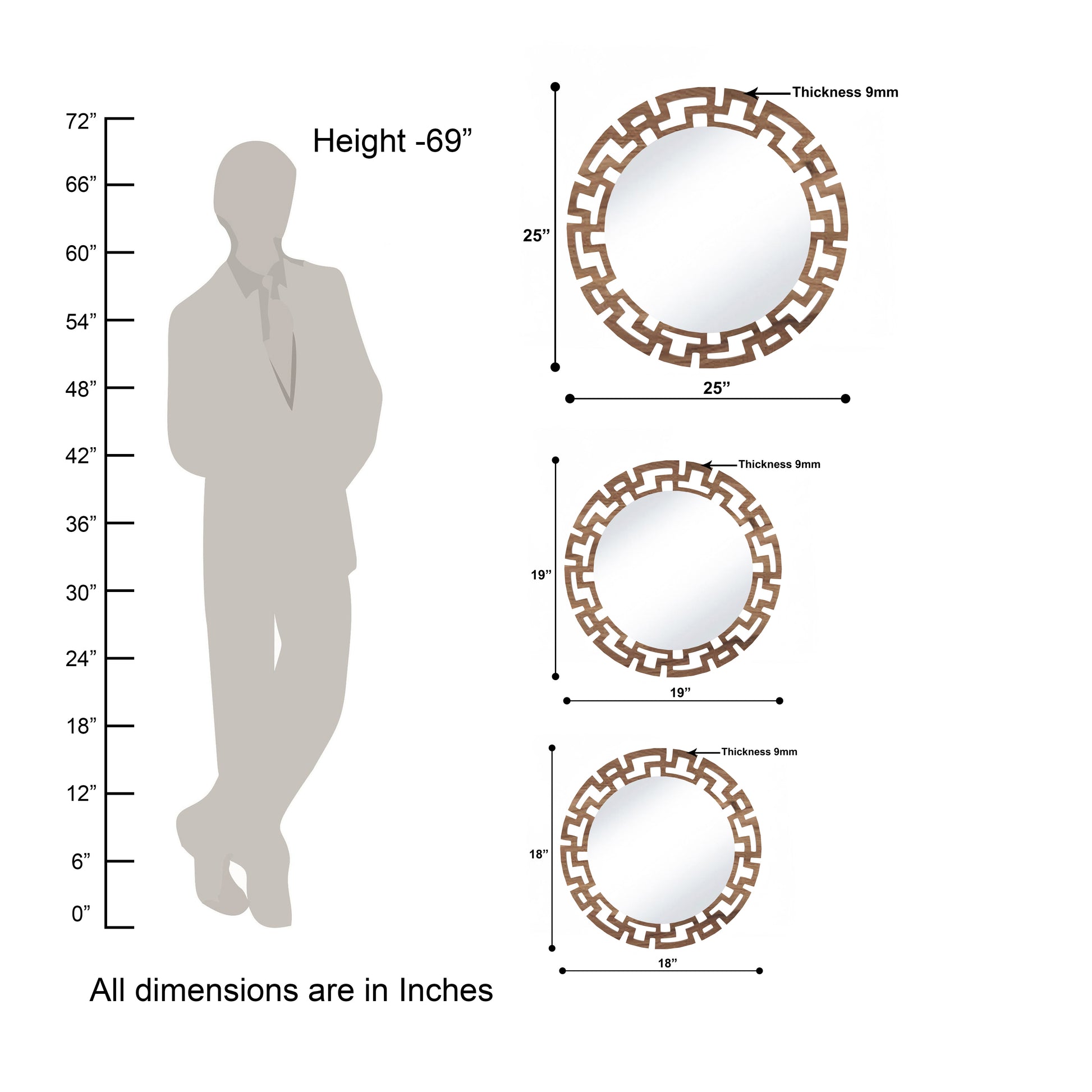 Geometric Designer Round Vanity Decor Wall Mirror (Walnut)