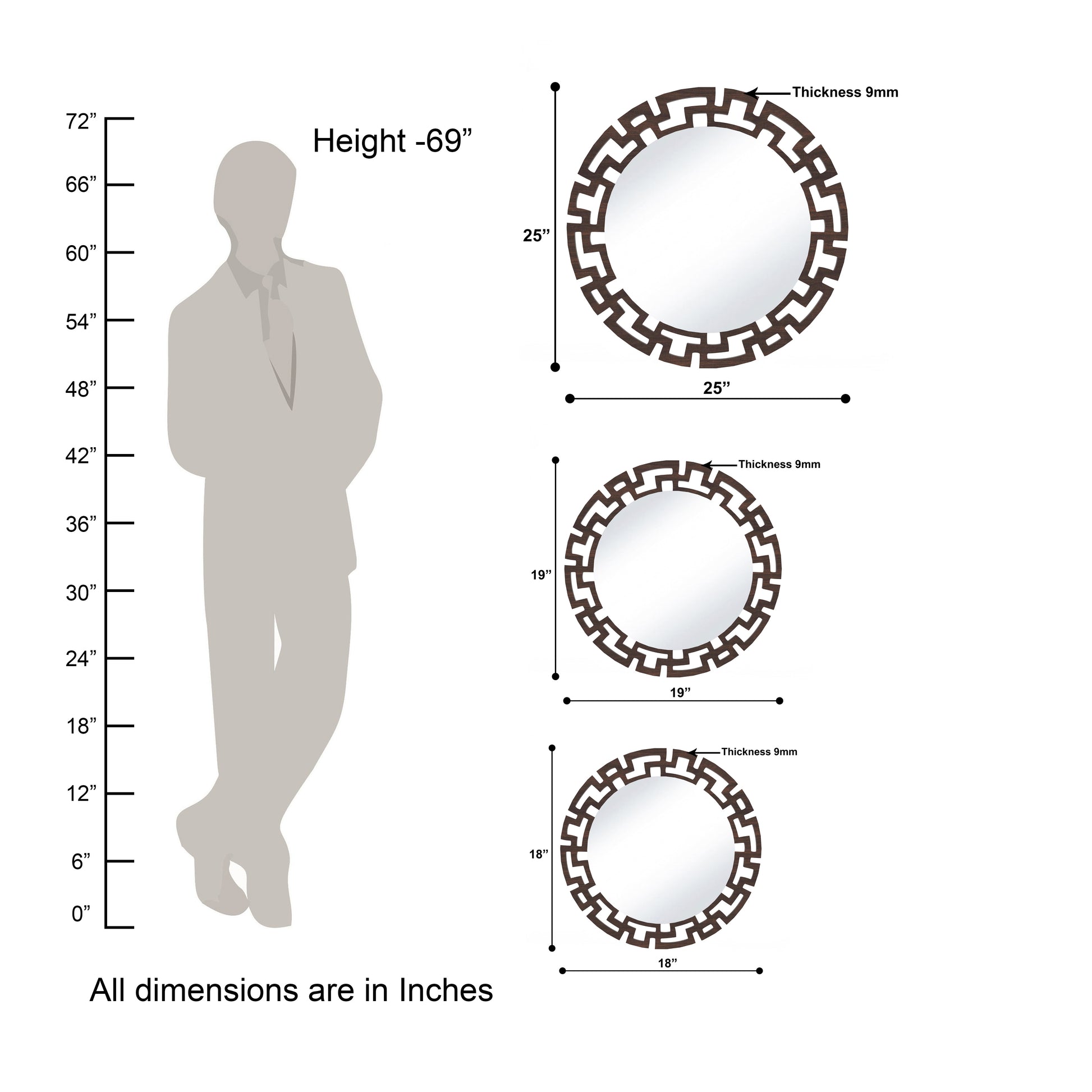 This exquisite Geometric Designer Round Vanity Shape Wall Mirror brings a unique decor for your bare walls with a great utility. It is matte finished with walnut color, made of Indian Engineered wood. Ideal for living room, Bedroom, Study room, Kid's room. Can be used as Book shelf, wall shelf, Toy shelf, showcase etc. The package includes all accessories like nails, wall plugs, instructions needed to hang on wall