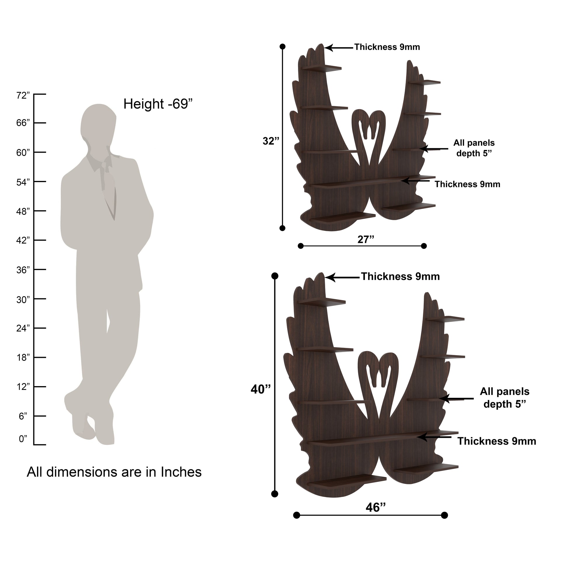 This exquisite Loving Swan Shape Wall Shelf brings a unique decor for your bare walls with a great utility. It is matte finished with walnut color, made of indian Engineered wood. Ideal for living room, Bedroom, Study room, Kid's room. Can be used as Book shelf, wall shelf, Toy shelf, showcase etc. The package includes all accessories like nails, wall plugs, instructions needed to hang on wall