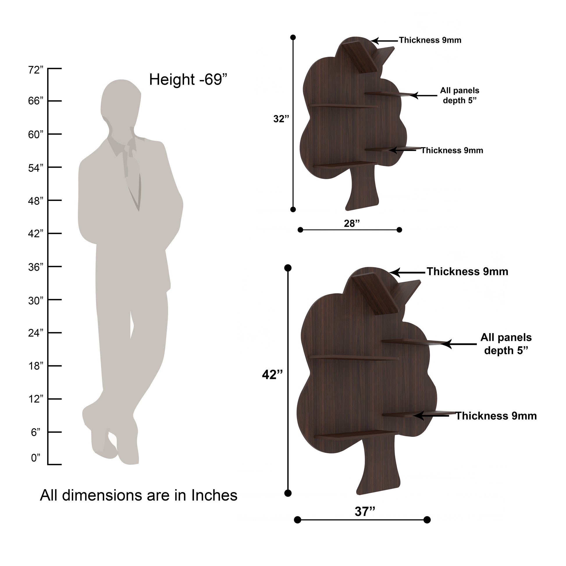 This exquisite Tree Shape Wall Shelf brings a unique decor for your bare walls with a great utility. It is matte finished with walnut color, made of Indian Engineered wood. Ideal for living room, Bedroom, Study room, Kid's room. Can be used as Book shelf, wall shelf, Toy shelf, showcase etc. The package includes all accessories like nails, wall plugs, instructions needed to hang on wall