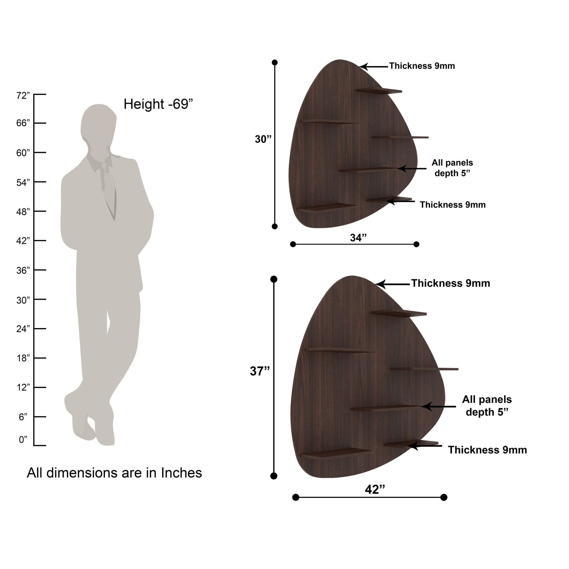 This exquisite Vicks Shape Wall Shelf brings a unique decor for your bare walls with a great utility. It is matte finished with walnut color, made of indian Engineered wood. Ideal for living room, Bedroom, Study room, Kid's room. Can be used as Book shelf, wall shelf, Toy shelf, showcase etc. The package includes all accessories like nails, wall plugs, instructions needed to hang on wall