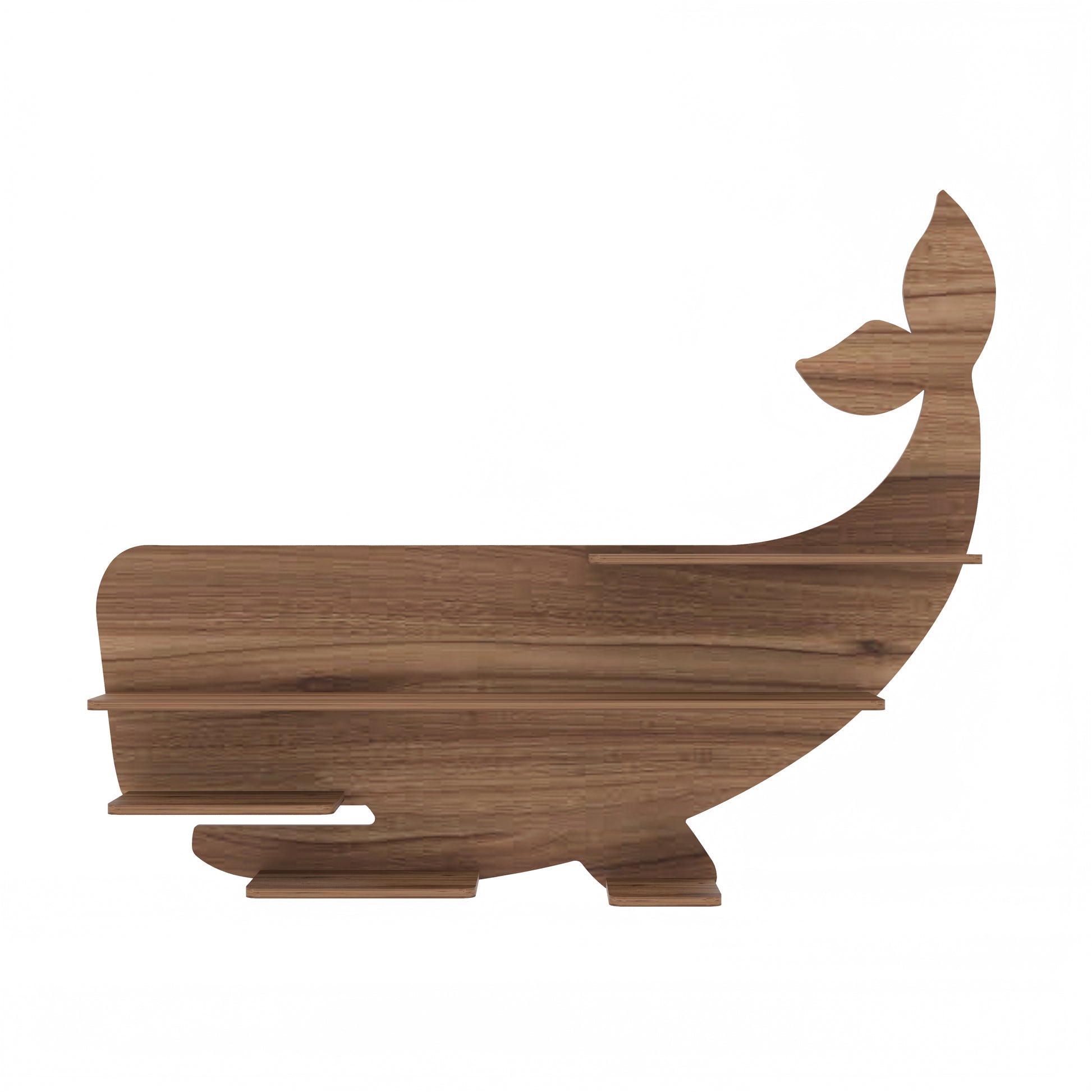 This exquisite Wale Shape Wall Shelf brings a unique decor for your bare walls with a great utility. It is matte finished with walnut color, made of Indian Engineered wood. Ideal for living room, Bedroom, Study room, Kid's room. Can be used as Book shelf, wall shelf, Toy shelf, showcase etc. The package includes all accessories like nails, wall plugs, instructions needed to hang on wall