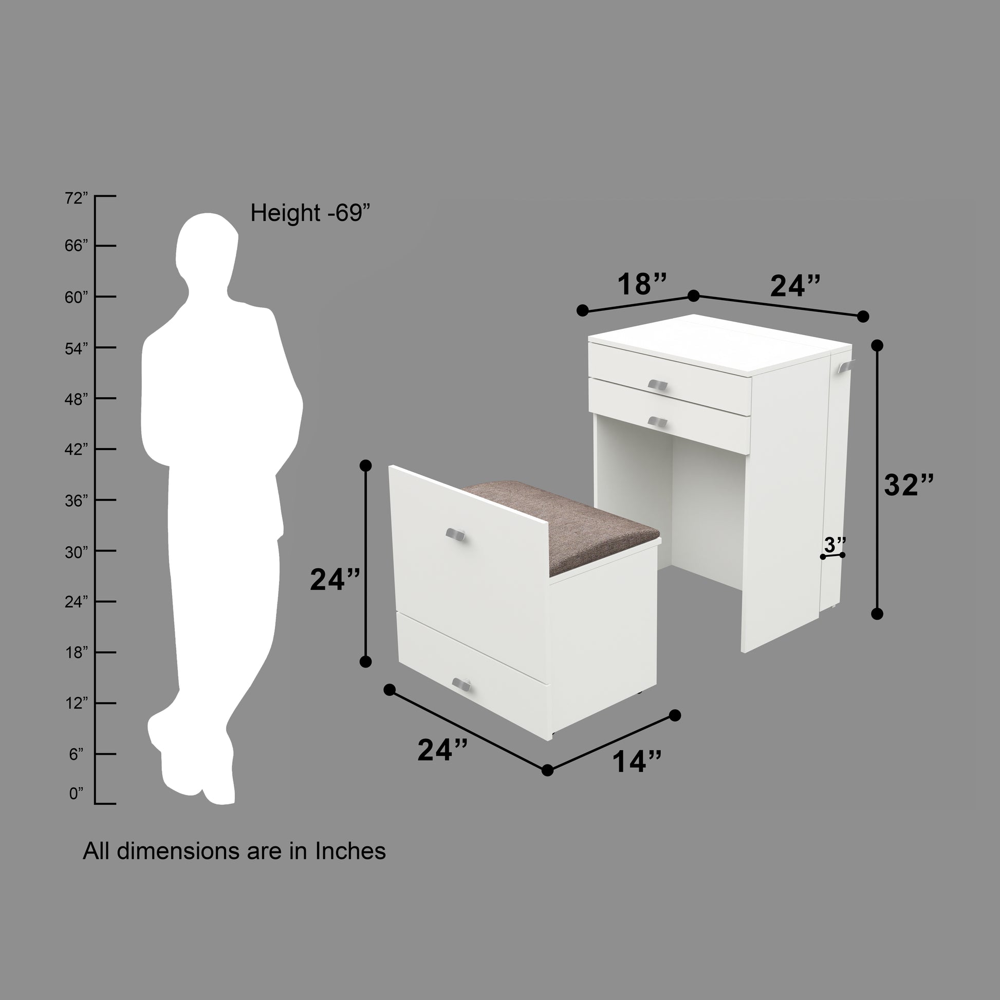 Upgrade your daily routine with this stylish and smart dressing table, expertly crafted from high-quality engineered particle board for long-lasting durability and a sleek modern look.